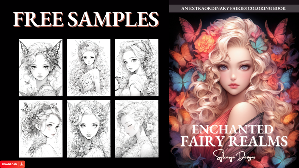 You will get 6 Sample Pages (8.5″ x 11″) in a PDF file format. *If you like these Enchanted Fairies Coloring pages, check out my shop for more designs!